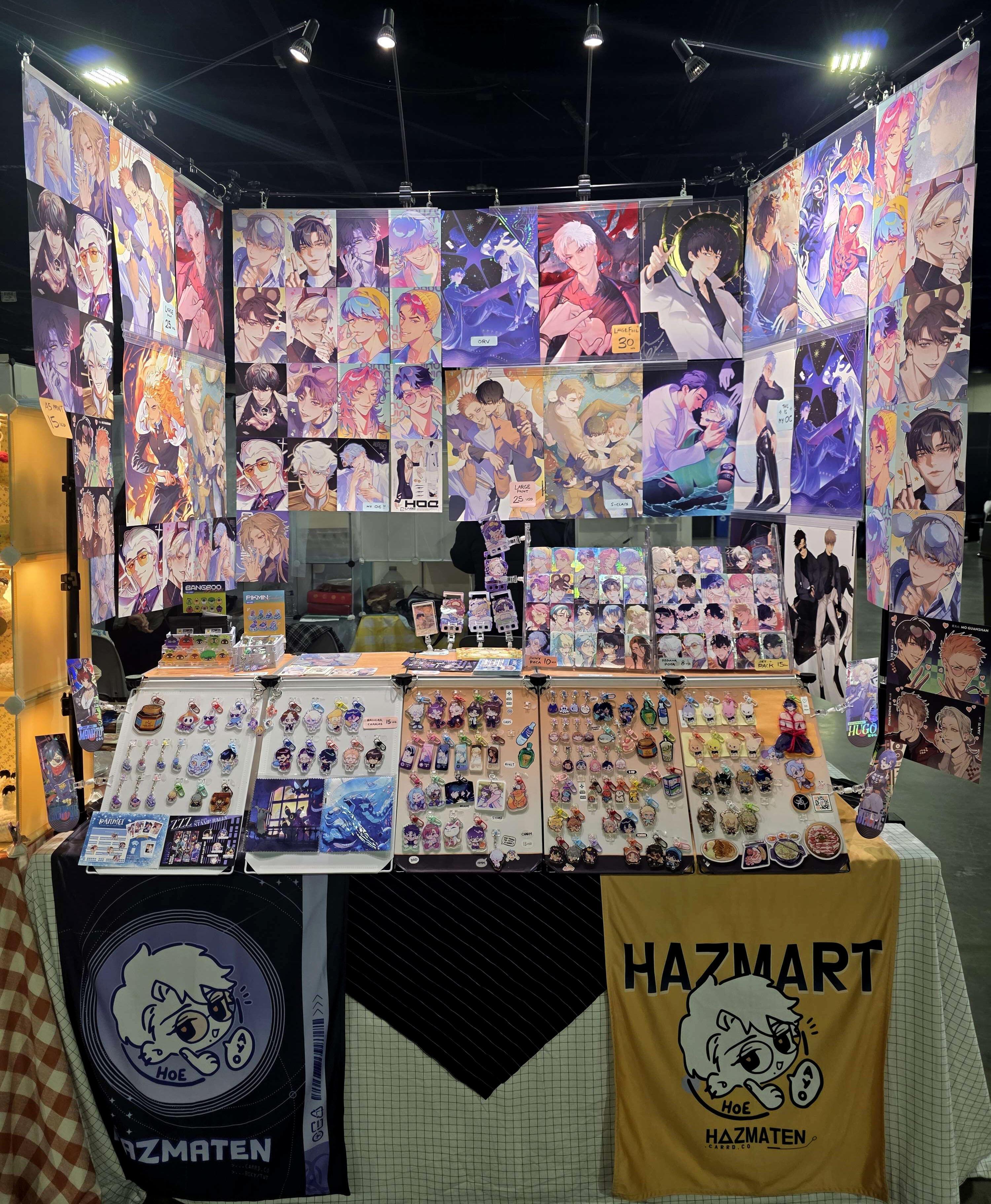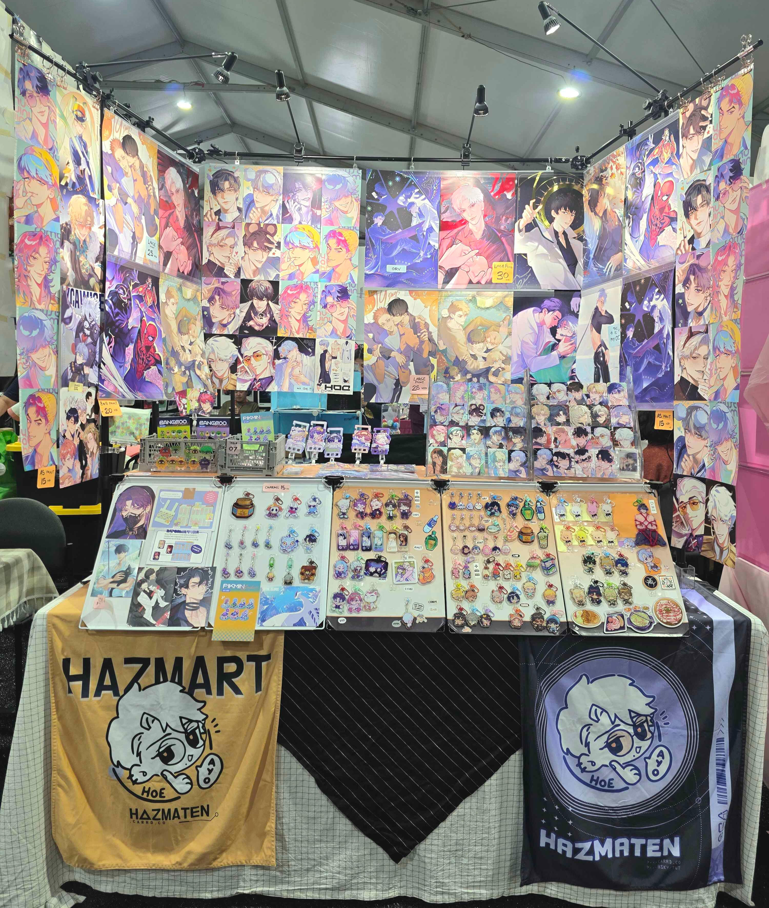 Any size booth or table limitation is possible. Dark conventions are also possible as I have strong lights.